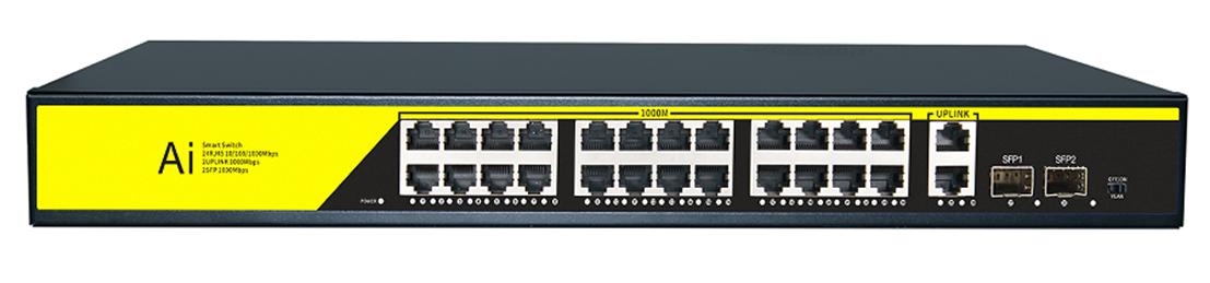 POE комутатор гігабітний Merlion 24 POE + 2 RJ45 + 2 SFP 10/100/1000 вбудований блок живлення 52V 6.15A