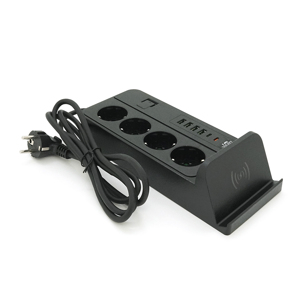 Мережевий фільтр із захистом від перенапруги G12, 4 розетки + 4 USB 3.2A + 2 Type-C + бездротова зарядка, 2 м, Black, Box