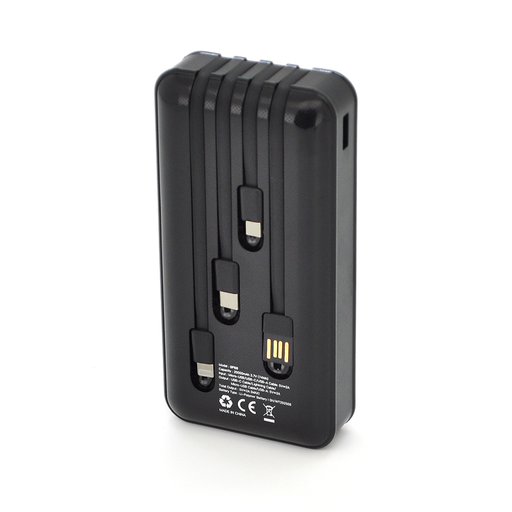 Powerbank BLIC BPB6 20000mAh, 2.1A, 4 кабелі: Type-C, Lighting, Micro, USB, Black, 0,450kg, Box