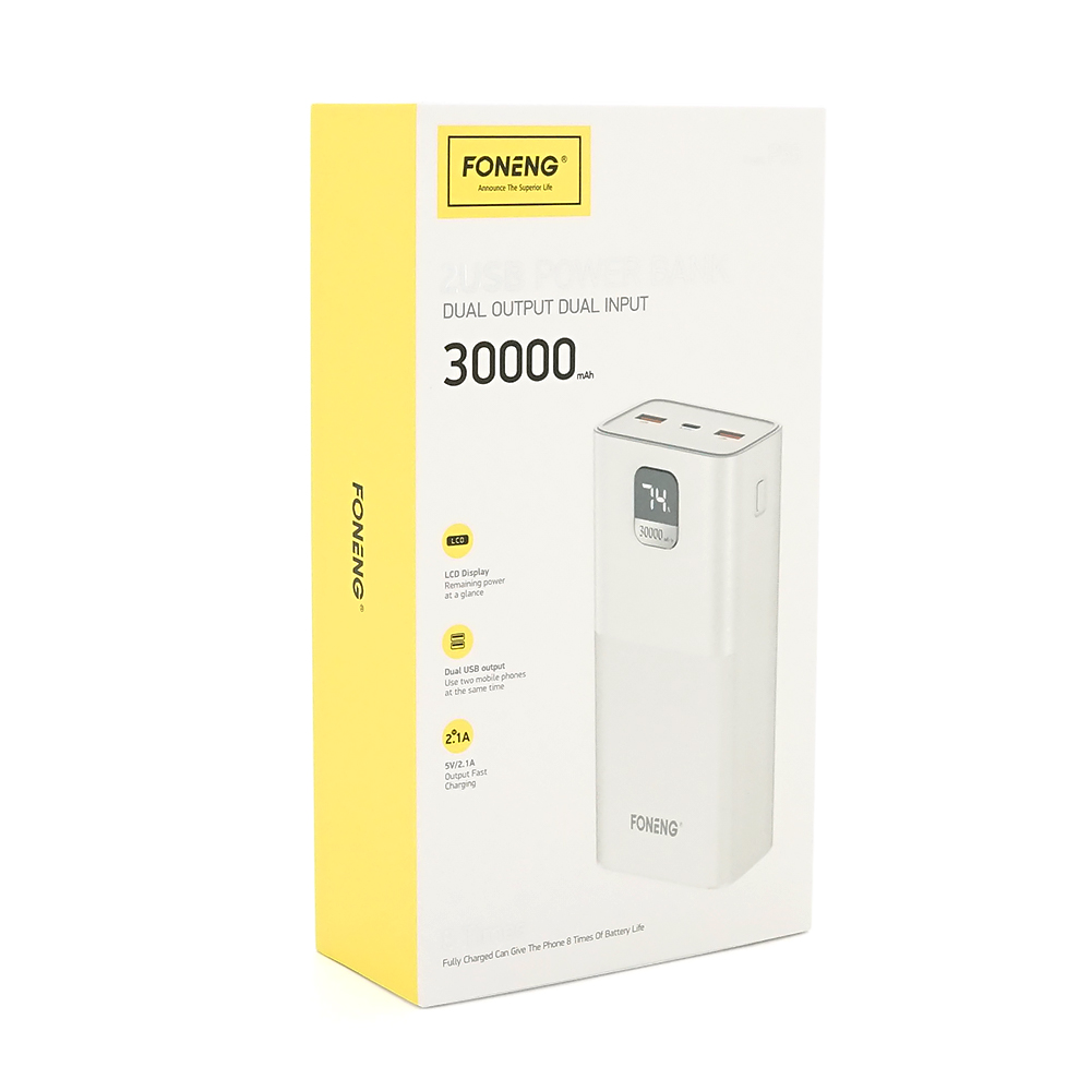 Power Bank FONENG P55 30000mAh, 2*USB+Tepe-C, White, 0.580kg, Box