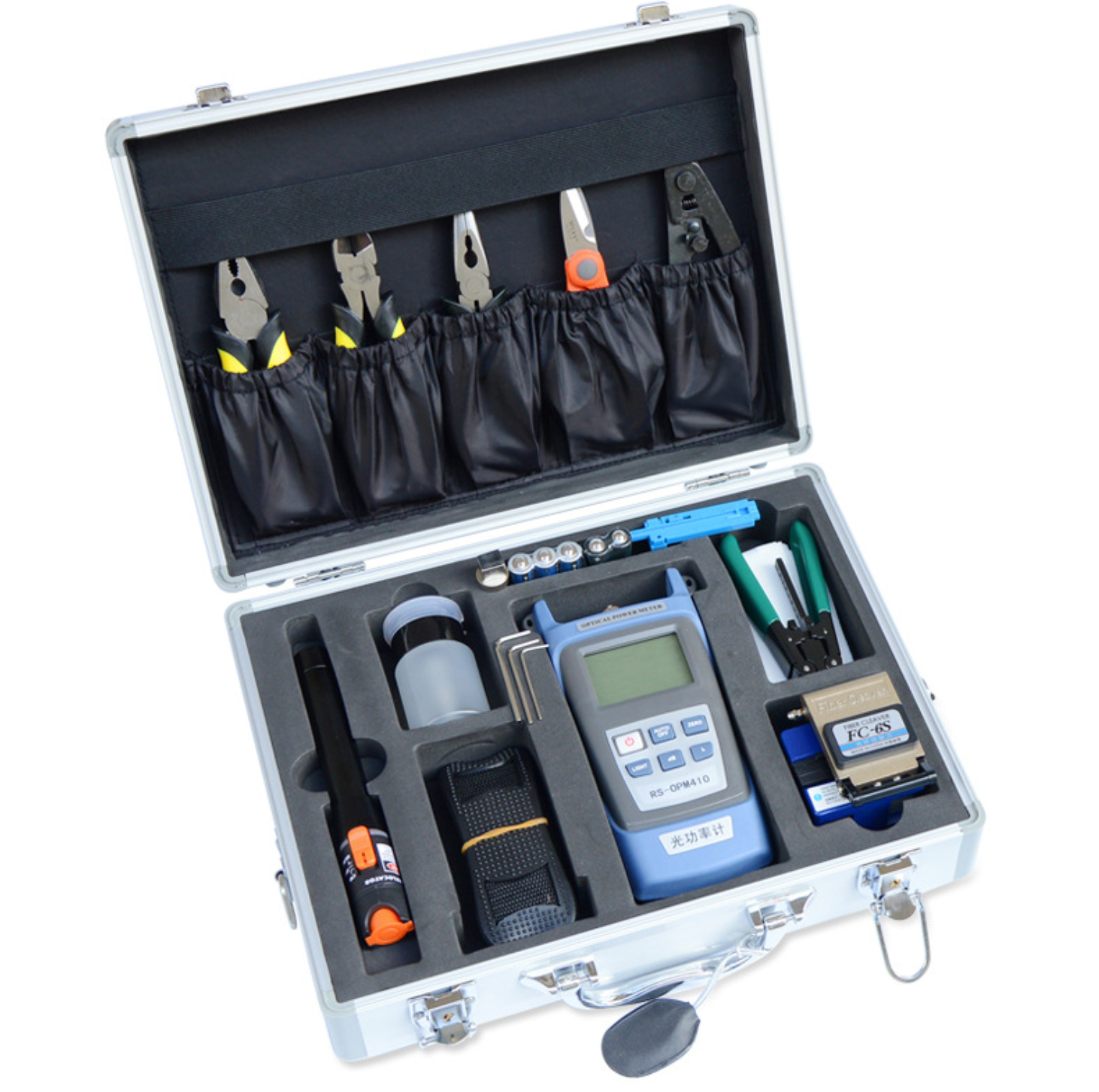Цей набір інструментів та тестерів призначений для роботи з оптичним кабелем. Він включає 15 різних інструментів, упакованих в металевий кейс від Rayshine.
