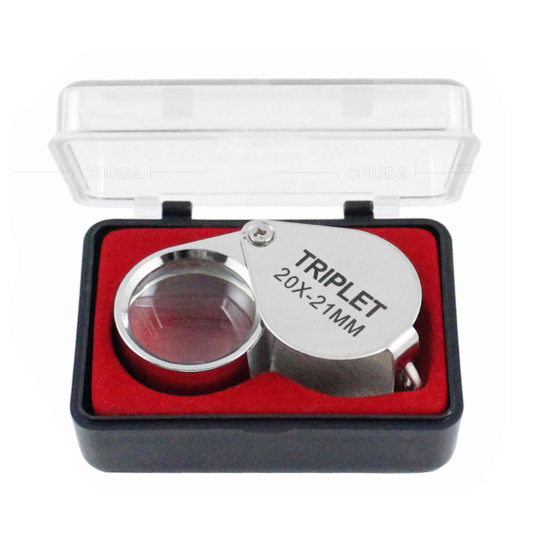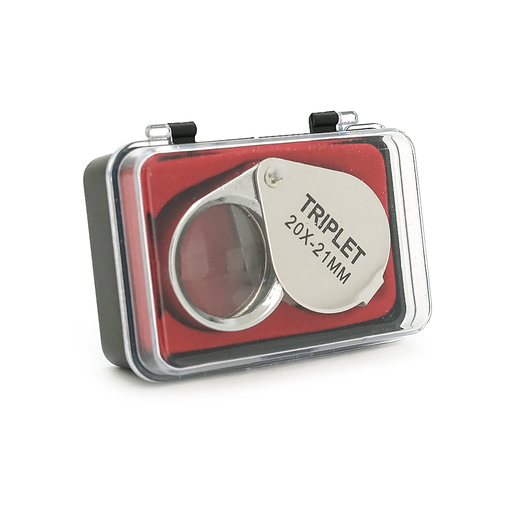 Лупа ручна TRIPLET 20X-21mm, складна (брелок), метал-скло, пластикова коробка. 60*24*18mm.