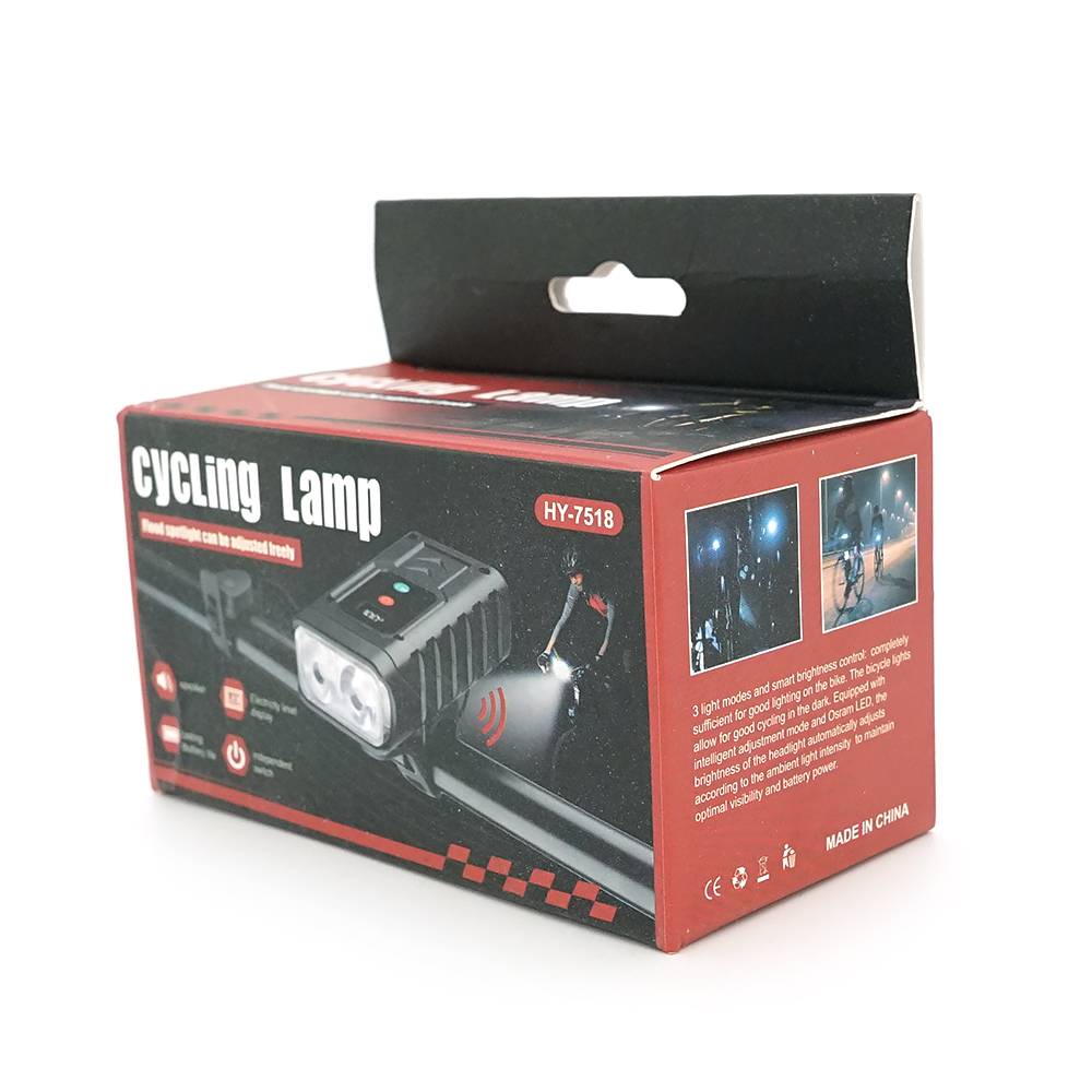 Ліхтарик велосипедний HY-7518, 4 режими + сигнал, вбудований аккум, індикація заряду, USB кабель, BOX