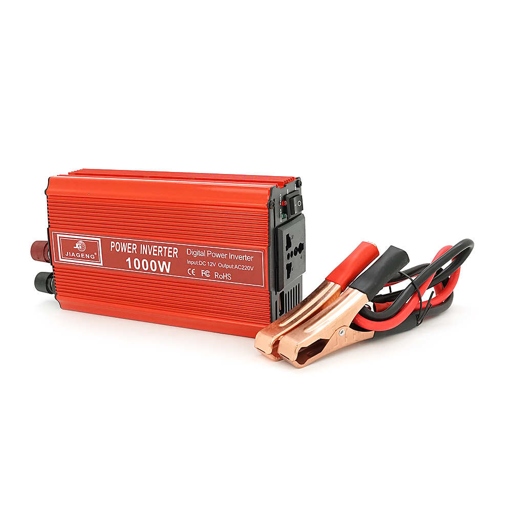 Інвертор напруги JIAGENG 1000ВА(600Вт), 12/220V, approximated, 1 універсальна розетка, клем + крокодили, Red, Box